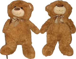 2 ours en peluche marron à effet paillette avec des yeux à boutons, un joli sourire et un joli ruban noué.Planet Pluch. 60 cm de longueur.