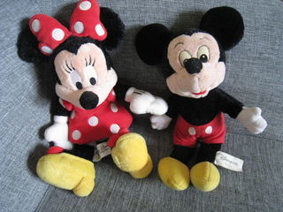 Le couple Mickey : 28 cm hauteur et Minnie 30 cm , en parfait état , Minnie à les yeux brodés, une robe en velours et une culotte blanche, les n?uds en relief sur les chaussures,