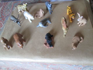 13 petits animaux (longueur 3-5 cm) divers : ours blanc, ours brun, lapin, écureuil, tigre, dromadaire, panthère noire, renne, lynx, morse, loup, phoque, loutre En matière plasti