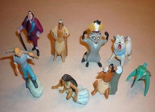Jouets anciens d'occasion - Jeu collection rétro - © DISNEY - " POCAHONTAS " Mini-smarties NESTLÉ - Série COMPLETE des 8 personnages - Vintage 1995 Tailles 3 cm à 6 cm - En très