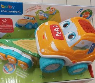 GALIPETTE L'AS DES PIROUETTES Clementoni TARIF 31€ 2 à 4 ans. Voiture télécommandée avec 1 bouton pour faire basculer le tout-terrain ; avec 2 modes de jeu, nombreuses chansons e