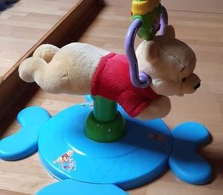 livre sous forme de chevalet où bébé peut tourner les pages. Lorsque bébé tourne les pages, cela déclenche un son de grelot. Les cartes, en feutrine, peuvent être retirées du suppo