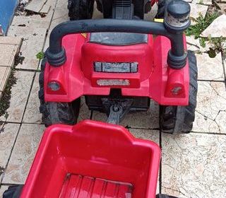 Vends tricycle robuste en métal laqué avec benne baszculante. Transmission par chaine. Guidon et selle réglables en hauteur. Roues en acier ajouré avec pneus en caoutchouc. Peu ut