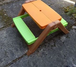 Se compose 1 table pliable pique-nique 1 tracteur porteur à pédales remorque rouge 1 tracteur porteur à pédales vert Le tout en bon état Remis en main propre