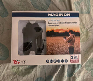 Drone télécommandé Maginon QC-720SE WiFi, neuf dans son emballage d'origine. Boîte comprenant le drone et ses accessoires visibles.
