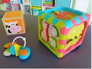Jouets d'Eveil pour Bébé Cube en Bois pour Assembler, Visualiser les chiffres et Mémoriser les différentes formes et couleurs. Contenu : 7 blocs empilables - Chaque bloc de co