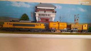 Rame HO de convoi d'entretien des voies . La rame se compose de: 1 Loco BB ROCO NS , avec sa boîte . 1 wagon nettoyeur de voies JOUEF (amélioré par mes soins) . 1 wagon entre