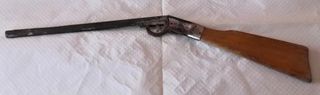 à vendre, carabine à flèche en bois et métal, 63cm, poids 400g, à restaurer, ne fonctionne pas, prix 25€ + port 5,50€ par mondial relay, paiement par cheque ou paylib ou vire