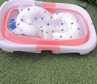 Baignoire pliante avec 2 pieds plus accessoires pour poser bébé.Neuf 5 euros a venir récupérer sur meilhaud pas d'envoi.
