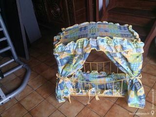 Lit poupée,couffin et pousette 25€ lit badalquin 5€ couffin Poussette pliable et son sac 50€