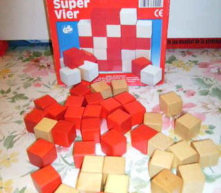 Boite de jeu" Super quatre en bois " SUPER 4 : Alignez en 4 et c'est gagné ! Jeu d'alignement de cubes en bois. Un très beau jeu tout en bois avec des cubes colorés en bois et