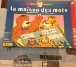 Vends la Maison des mots de Nathan Très bon etat composer ses premiers mots 1à5 joueurs - 6-8 ans Contenu de la boite : - 10 planches de jeu illustrées recto-verso - 216 j