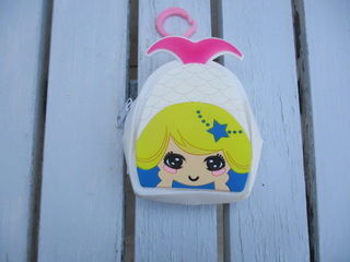 Porte monnaie en plastique souple, fermeture éclair, mousqueton rose, neuf