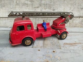 Ancien Camion de Pompier Jouet Tôle Joustra Longueur 32cm Bon état général mais incomplet.
