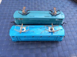 Locomotive electrique JOUEF HO BB9001 verte Locomotive electrique JOUEF BB9004 Bleu clair 1 Tranformateur type 480 JOUEF, 2 Wagons, Ensemble de rails voir photos Vendu en lots