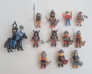 Vends 1 lots de 12 soldats du Moyen-Age: - 1 chevalier noir / 10€ - 10 soldats avec casques (sauf 2) et armes / 2€ l'unité - 1 avec torche / 1€ Ou le tout 30€ Avec un minimum