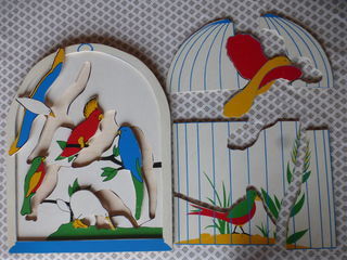 Puzzle double en bois sur le thème des oiseaux pour enfants de 1-4 ans comprenant: 1 puzzle de 6 pièces 1 puzzle de 5 pièces dimensions:30 cm de longueur sur 24 cm de largeur, é
