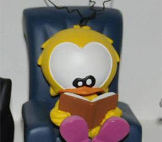 frais d'envoi en supplément figurine le piaf. statuette looney tunes 10 cm peinte à la main. Modèle : le piaf assis dans un fauteuil