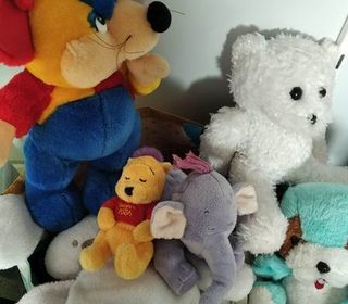 lot de 20 peluches, en bon état, voire neuves, de toutes dimensions et couleurs Lot complet (aucun détail) à prendre sur place sinon frais de port en plus (5€ si règlement hors