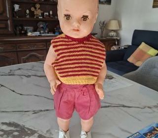 Baigneur 60 cm "Poupon ancien Nani-convert" Yeux riboulants Bras et jambes articulés + petites tenues de rechange