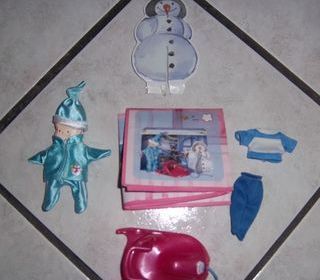 3 pièces sur le porte manteau 1 dépliant 1 ensemble 2 pièces 1 luge rouge la moitié du bonhomme de neige Paiement chèque, virement bancaire pour un envoi postal.