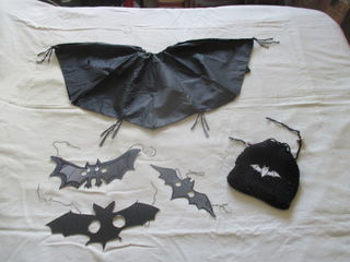 déguisement de chauve-souris que j'ai fait avec le récup : cape, 3 masques, sac à bonbons je le vends 0,30 € (30 centimes)