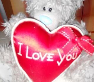 Joli petit ours avec un coeur rouge I LOVE YOU neuf, hauteur 20cm. Ours gris avec les yeux noirs et un joli petit museau bleu, sur la patte gauche il est écrit ME TO YOU. Visible à