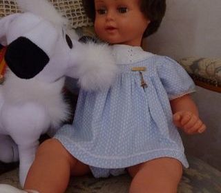 Yeux dormeurs gris bleu qui fonctionnent parfaitement Visage très frais Cheveux tous présents non coupés Habillée par mes soins 20€ + Port via mondial relay 4,50€ Ou à ret