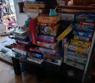 jeux de société je les ai tous apparament j en ai une 50 aine qui sont ranger mais y en a encore deriere bcp de Disney aussi et les prix varient de 3 a 13€ pour les neuf car j ai