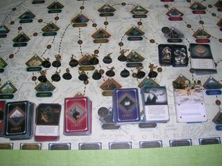 Jeu en anglais. La boite est un peu défraîchie mais le contenu est en bon état. Toutes les cartes sont protégées. Les figurines sont montées mais non peintes. Remise en main pr