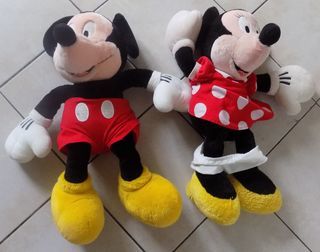 lot de 2 grandes belles peluches de Mickey et Minnie 58cm de haut pour Minnie 60cm pour Mickey 24cm de large pour les 2 et 12cm d'épaisseur au niveau de corps pour les 2 et 28cm d'