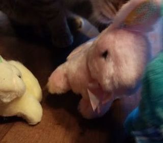 famille lapin peluche 1 bleu 1 jaune 1 rose neufs