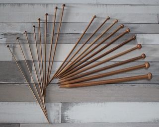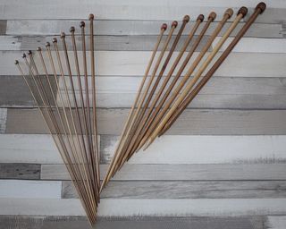 Vends Aiguilles a tricoter en bambou, longueur 25cm, très belle qualité, finition lisse. La taille est marquée sur chaque aiguille. Matériel: Bambou Longueur: 25cm Couleur: Te
