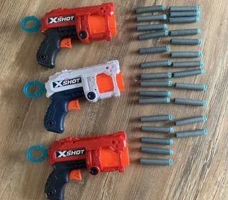 Vends 3 Lanceurs de fléchettes en mousse + 25 fléchettes " XSHOT " - Très bon état - Prix 15 euros