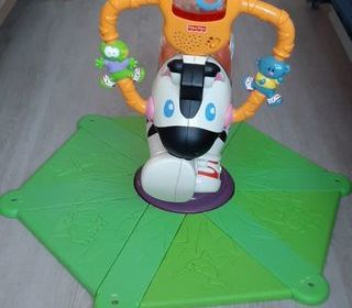 Jouet FISCHER PRICE pour enfant dès 18 mois, en forme de zèbre sur base à bascule. Équipé d'un guidon orange avec des activités interactives (sonores et lumineuses) et des figurin
