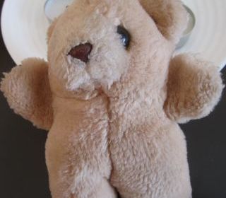 Je vends un petit ourson en peluche mignon de 12 cm couleur crème pour tous les âges