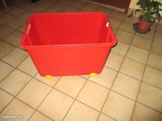 Bac range jouets sur roulettes rouge en très bon état - longueur : 60 cm - largeur : 40 cm - hauteur : 38 cm contact : m2011 ou p2013