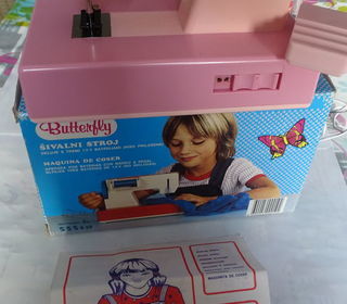 Bonjour, MACHINE A COUDRE A PILES VINTAGE " BUTTERFLY " Machine à coudre " TINA " jouet pour enfant qui fonctionne à piles comme une véritable machine avec aiguille en état de m