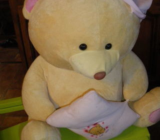 3 magnifiques peluches donc 1 cheval 60 cm de long comme neuf qui émet du bruit quand on lui touche les oreilles + 1 grand et très joli ours en peluche avec son bonnet de nuit 55