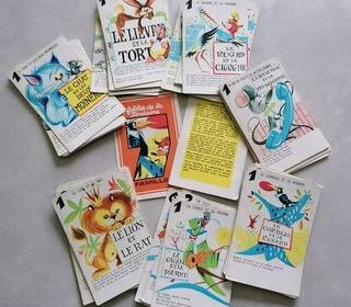 Ancien jeu de cartes 7 familles : les fables de la Fontaine - 87 x 56 mm environ - carton - Je n'ai pas la boite - Prix 4 €