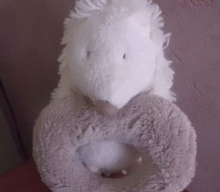 peluche herisson hochet blanc et marron glacé grelot a l'interieur 13 cm marque tartine et choclat tres bon etat envo irapide ref 437