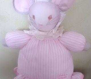 doudou vintage hibou blanc et bleu deguise en marin 21 cm quine quand on le secoue marque boulgom j'ai mis bon etat les couleurs sont un peu passees mais la peluche reste en bon et