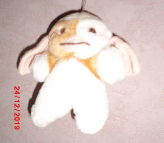 peluche gizmo marron et blanc oreilles saumon en tissu 14 cm marque sandy tres bon etat envoi rapide ref 407