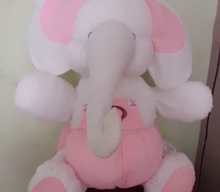 peluche elephant puffalump blanc et rose en toile de parachute 38 cm en position assis marque tomas j'ai mis bon etat a ete recousu a l'arriere mais rien de mechant la peluche rest