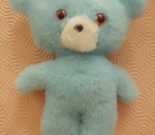 peluche ours bleu turquoise yeux orange et noir museau blanc nez plastique noir 18 cm marque lotus tieno tres bon etat envoi rapide ref 430