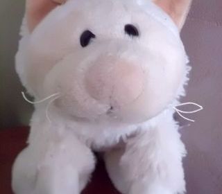 peluche chat blanc et beige avec sa capuche 28 cm en position allonge marque nici tres bon etat envoi rapide ref 433