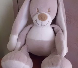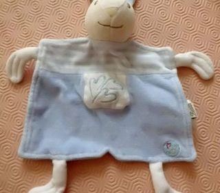 doudou plat lapin blanc et bleu ciel en velours gratte marque bestever tres bon etat envoi rapide ref 428