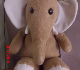peluche elephant marron et ecru en tissu eponge et velours gratte yeux noir plastique 33 cm marque ajena tres bon etat envoi rapide ref 365