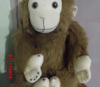 peluche singe mazrron et beige poil mi long 35 cm marque quadra tres bon etat envoi rapide ref 401