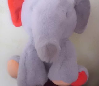 peluche elephant gris rouge et orange 22 cm en position assis marque francoise saget tres bon etat envoi rapide ref 440